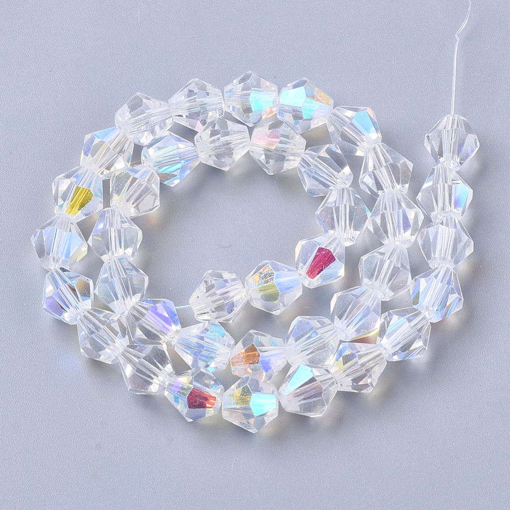 Glass Bicone 6mm Crystal Clear approx 46 beads per 26cm strand