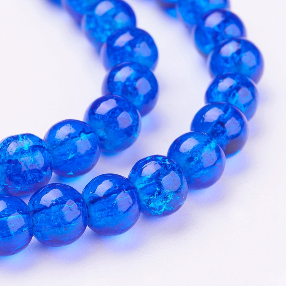 Glass Crackle 6mm Round Blue