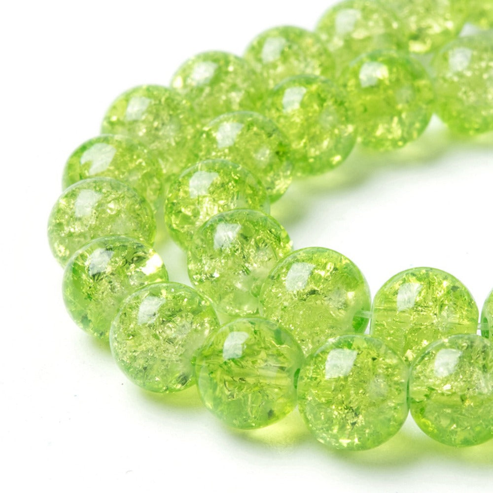 Glass Crackle 10mm Round Lime