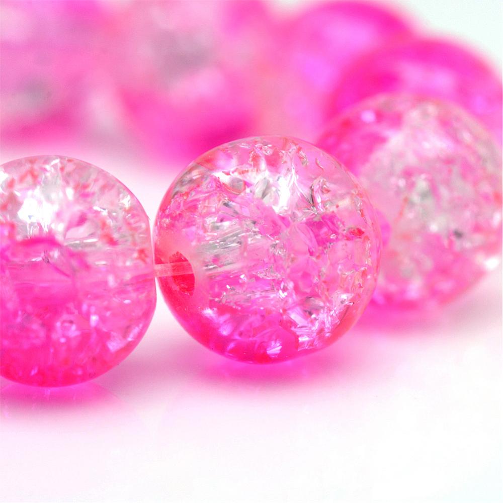 Glass Crackle 10mm Rnd Pink