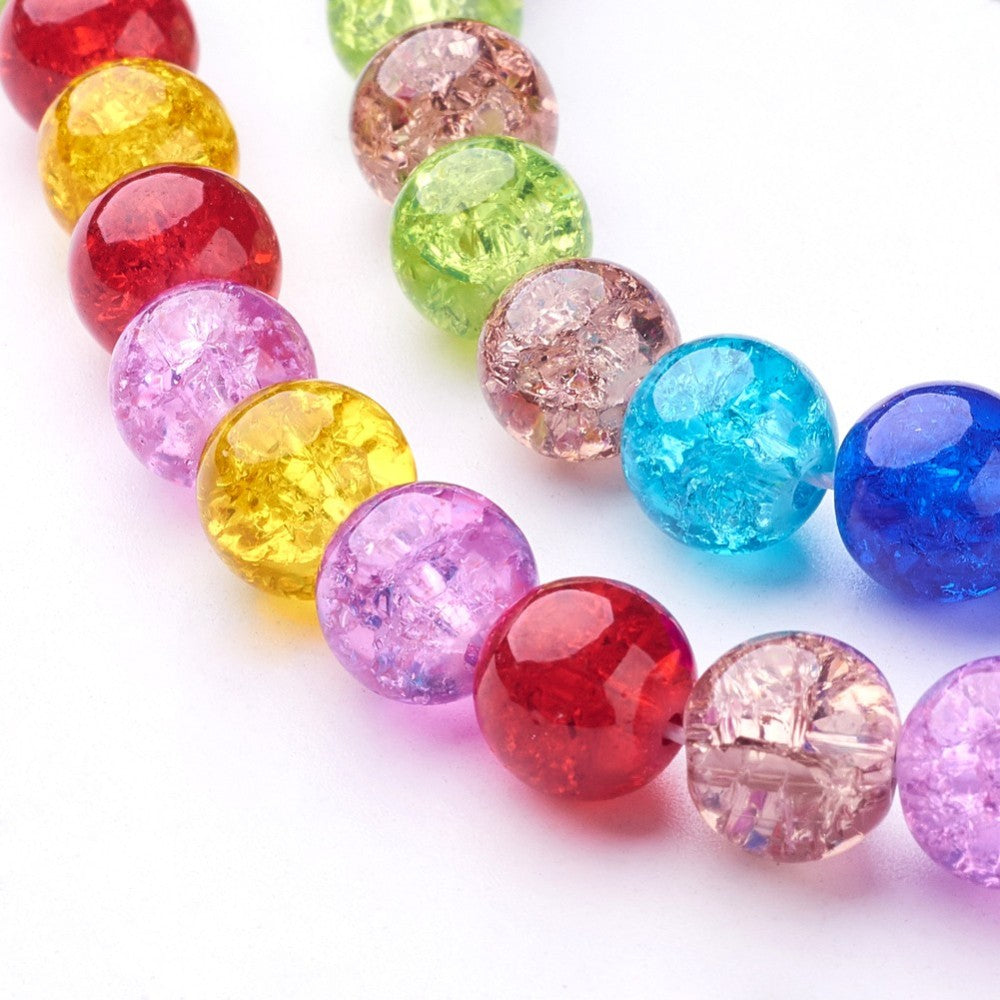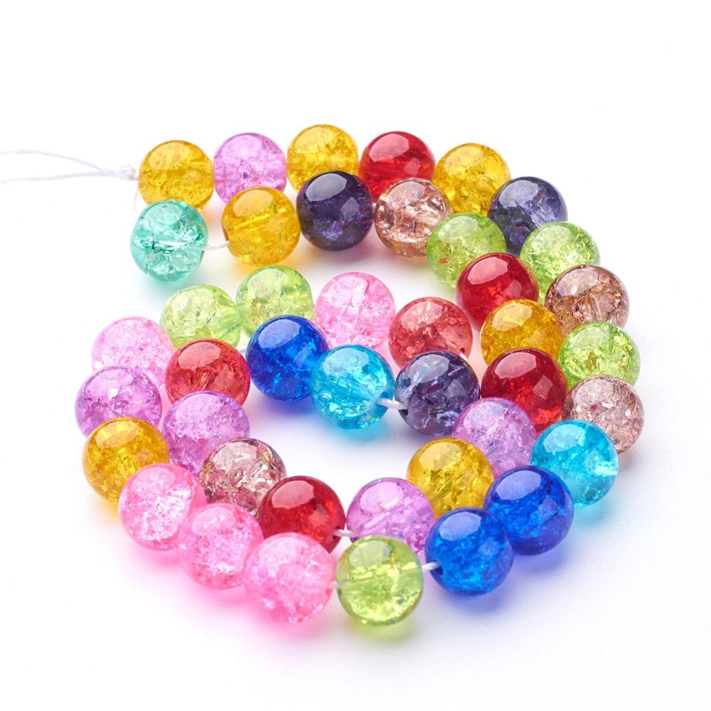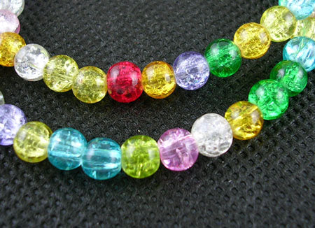 Glass Crackle 10mm Rnd Mixed Colour 40cm strand approx 42pcs per strand hole: about 1mm. Crackle beads are heated and rapidly cooled to produce internal crackles. Crackles increase light reflection inside the beads deepening the drama of colour. Size and shape may vary slightly and colour may vary from dye lot to dye lot.