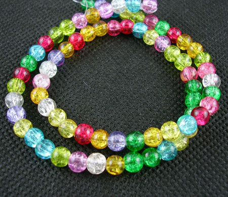 Glass Crackle 10mm Round Mixed Colour 39cm St Approx 42 beads