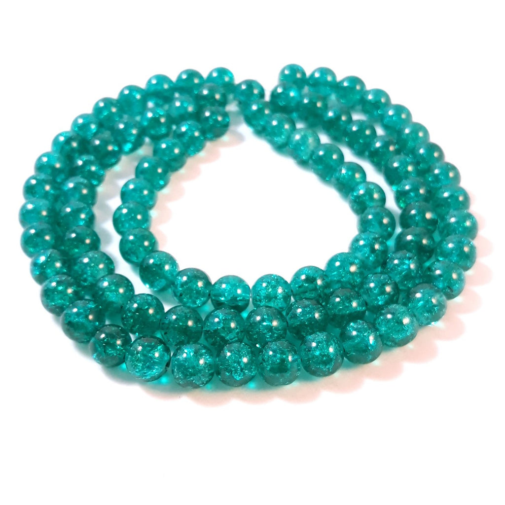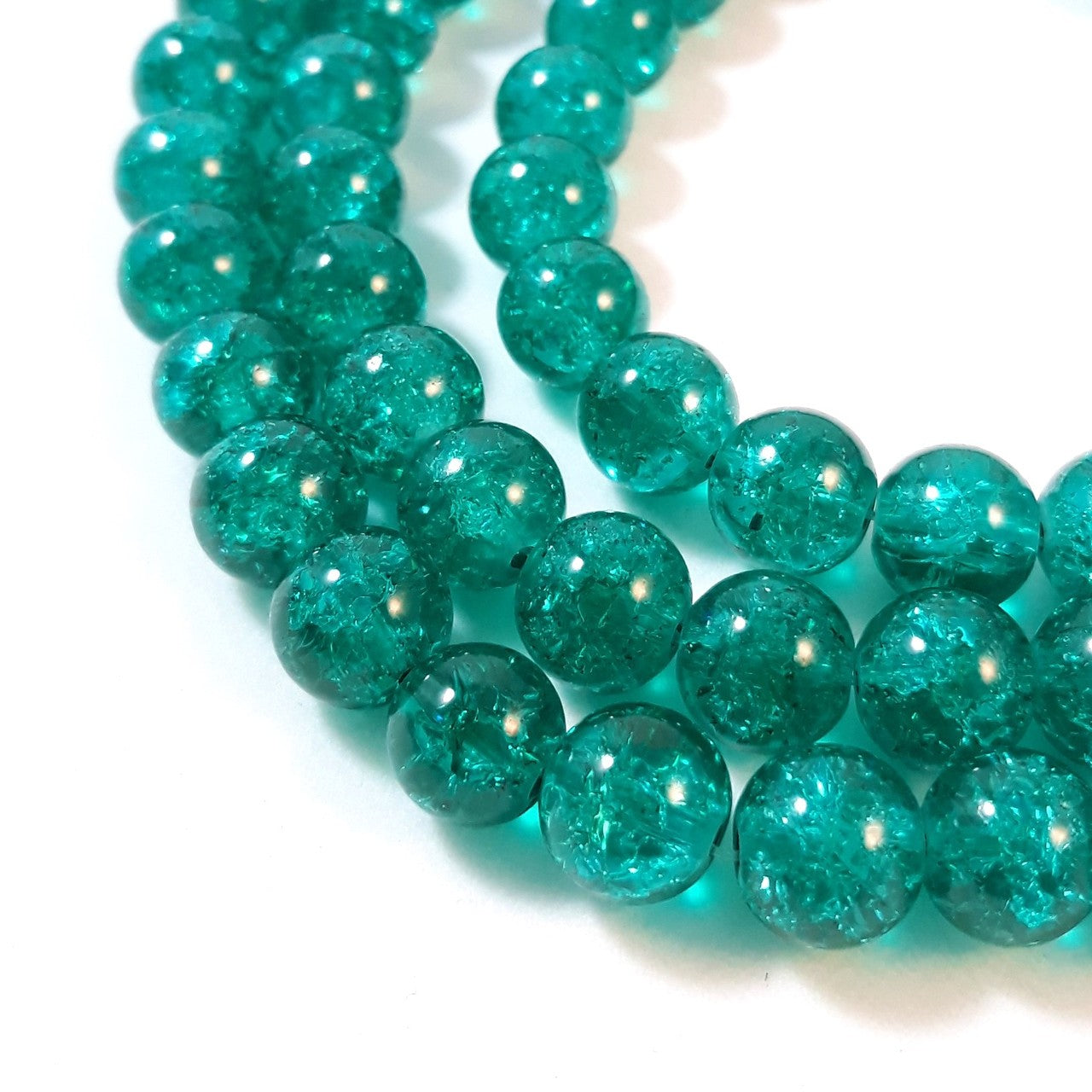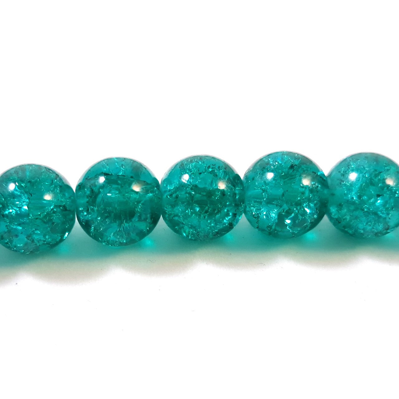 Glass Crackle 10mm Round Teal 86cm strand approx 89pcs per strand hole: about 1mm. Crackle beads are heated and rapidly cooled to produce internal crackles. Crackles increase light reflection inside the beads deepening the drama of colour. Create a dramatic style with crackle beads.