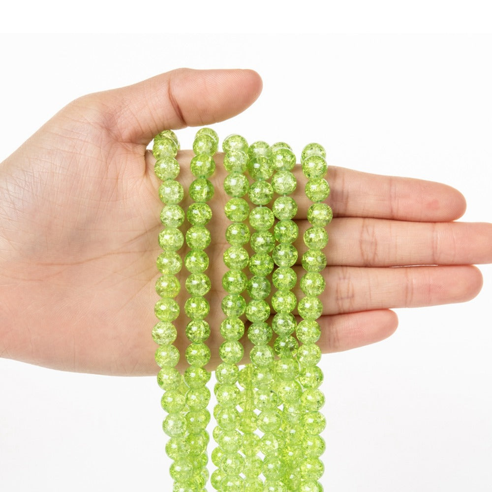 Glass Crackle 10mm Rnd Blue 86cm strand approx 89pcs per strand hole: about 1mm. Crackle beads are heated and rapidly cooled to produce internal crackles. Crackles increase light reflection inside the beads deepening the drama of colour. Size and shape may vary slightly and colour may vary from dye lot to dye lot.