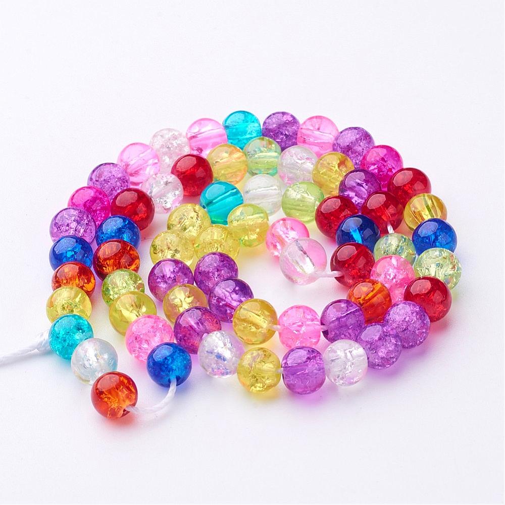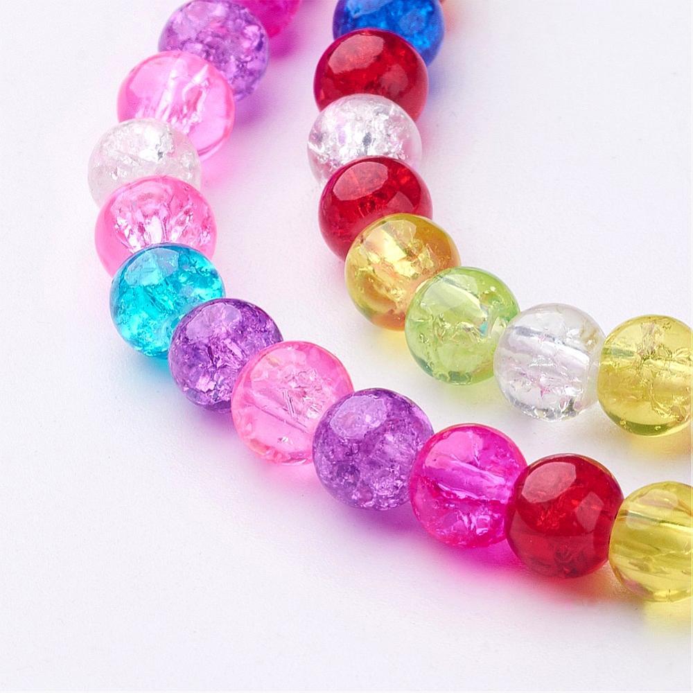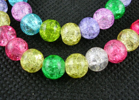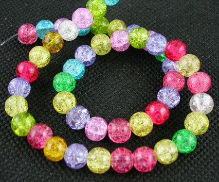 Glass Crackle 6mm Rnd Mixed Colour 37cm strand approx 66pcs per strand hole: about 1mm. Crackle beads are heated and rapidly cooled to produce internal crackles. Crackles increase light reflection inside the beads deepening the drama of colour. Size and shape may vary slightly and colour may vary from dye lot to dye lot.