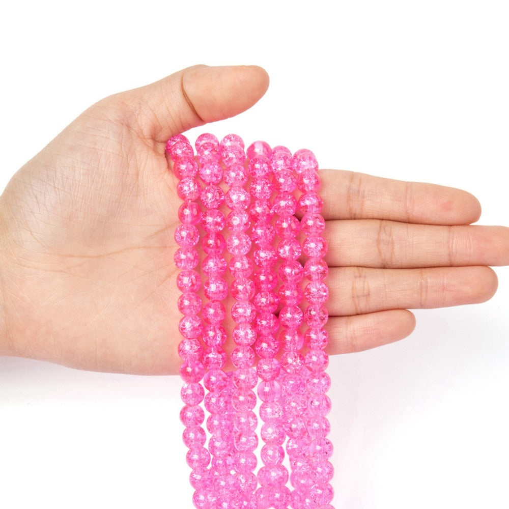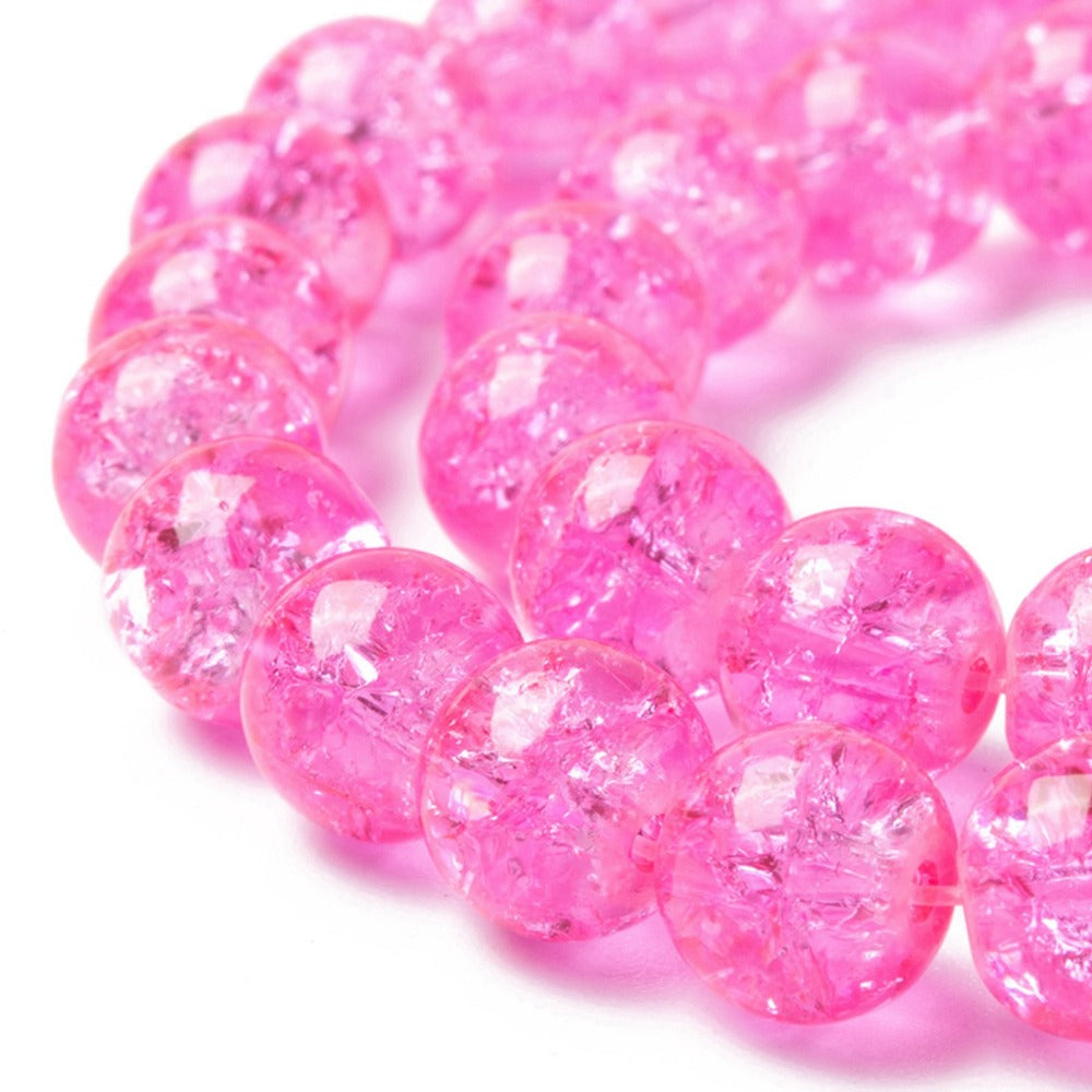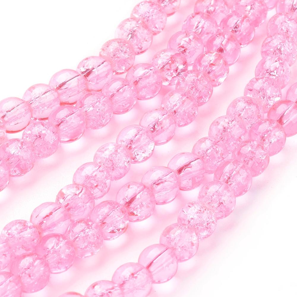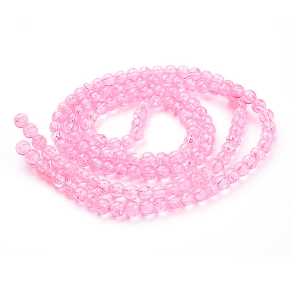 Glass Crackle 6m Rnd Pink 86cm strand approx 140 pcs per strand hole: about 1mm. Crackle beads are heated and rapidly cooled to produce internal crackles. Crackles increase light reflection inside the beads deepening the drama of colour. Size and shape may vary slightly and colour may vary from dye lot to dye lot.
