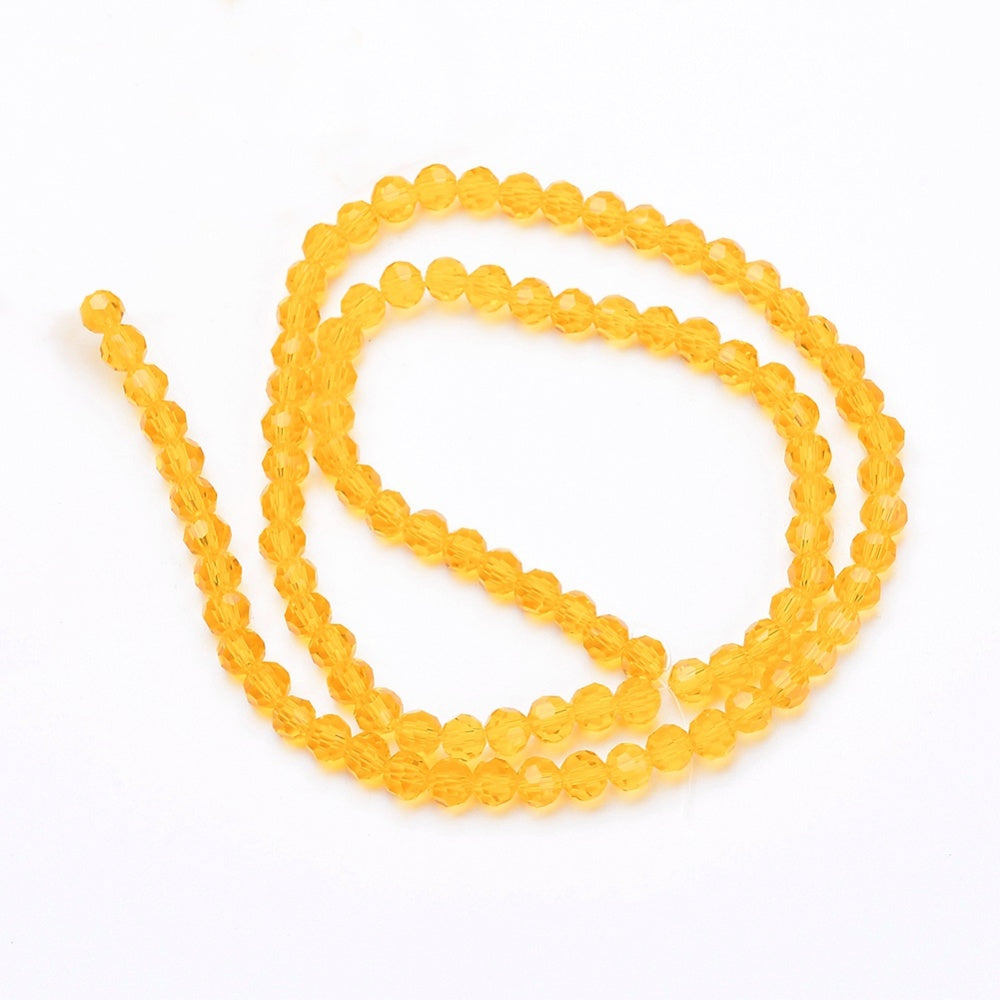 Glass Facet 4mm Round Yellow approx 95 beads per 35cm strand