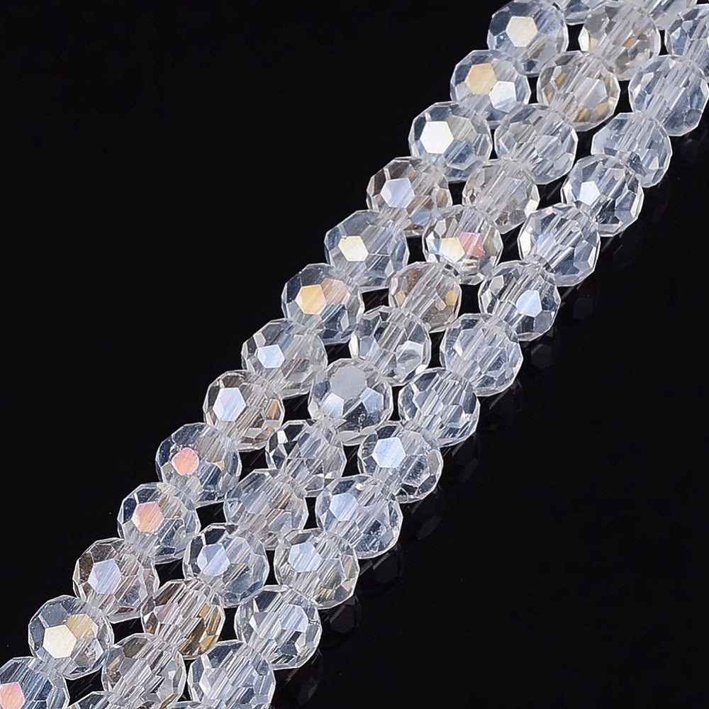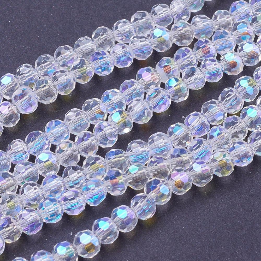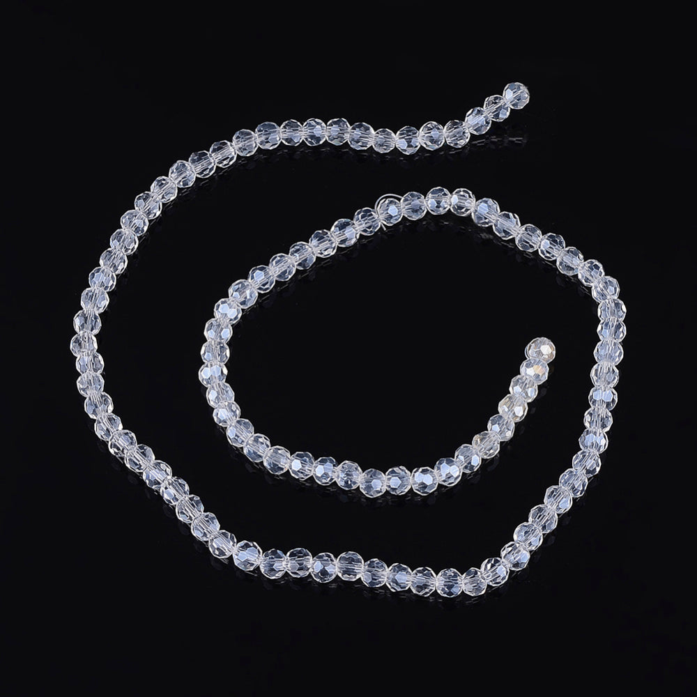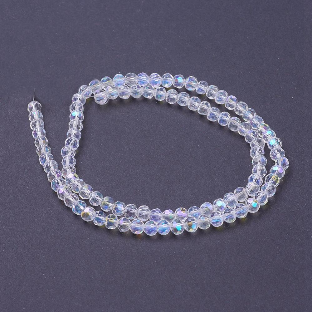 Faceted Round 4mm Glass Crystal AB 36.5cm Strand Approx 98 beads