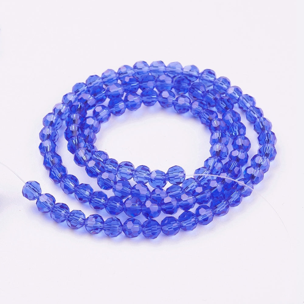 Faceted Round 4mm Glass Sapphire 38cm Strand Approx 97 beads
