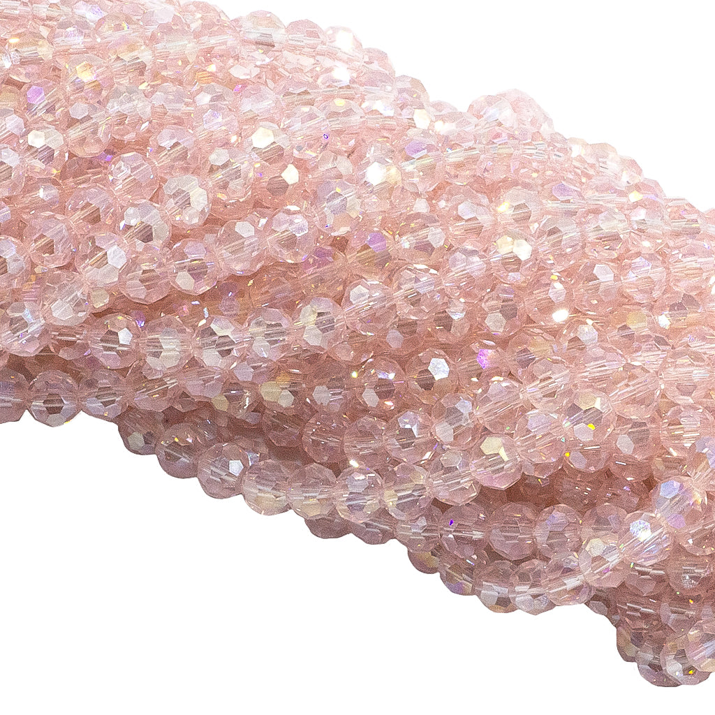 Faceted Rnd 6mm Glass Pink AB 41cm St Approx 71 beads