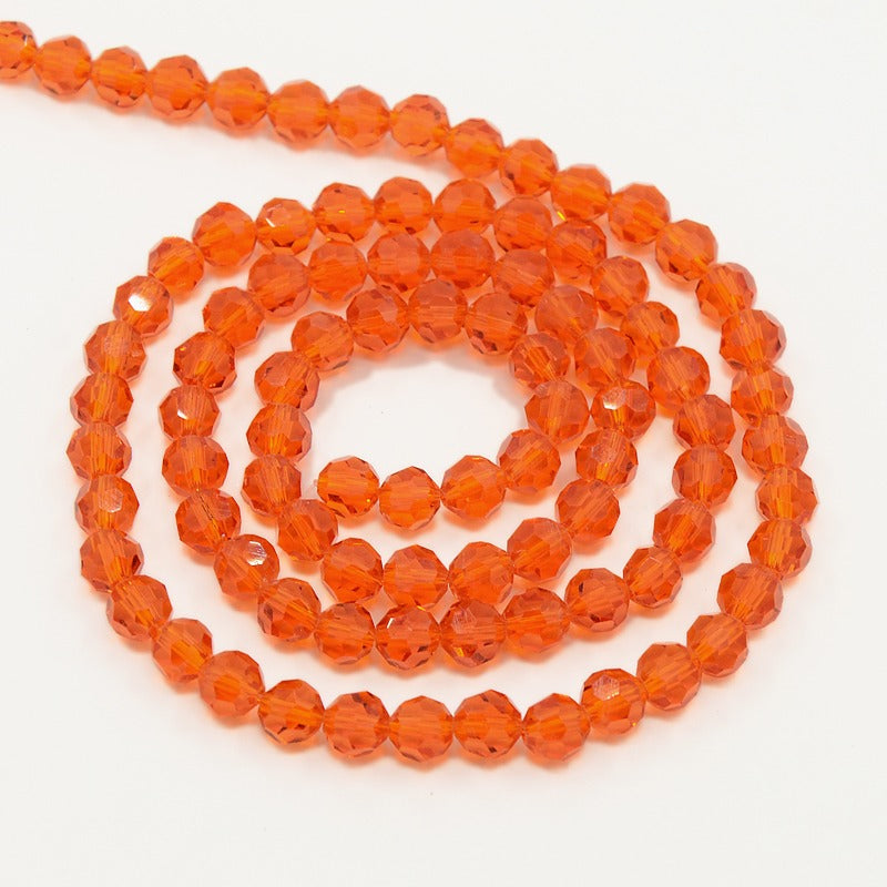 Faceted Round 8mm Glass Orange 35cm St Approx 47 beads