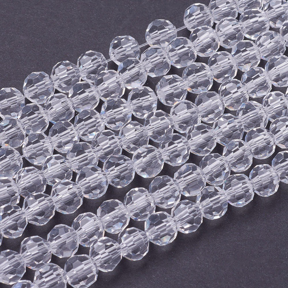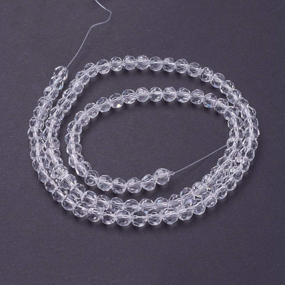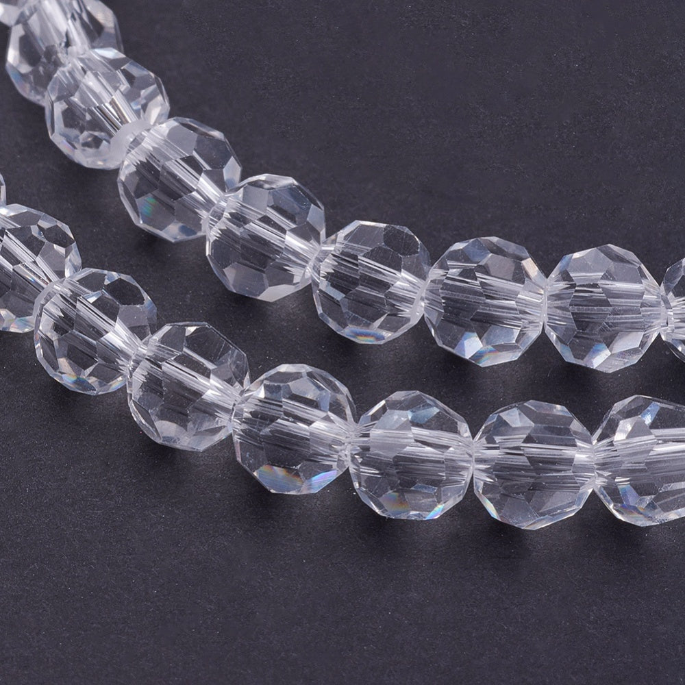 Glass Facet 6mm Round Crystal Clear approx 48 beads per 26cm strand