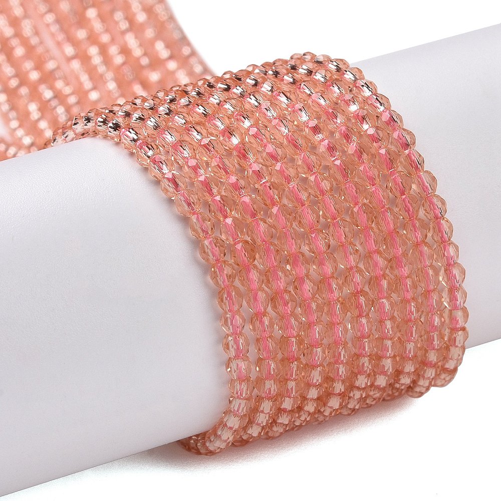 Glass Facet 2mm Round Misty Rose approx 182 beads per 36cm strand