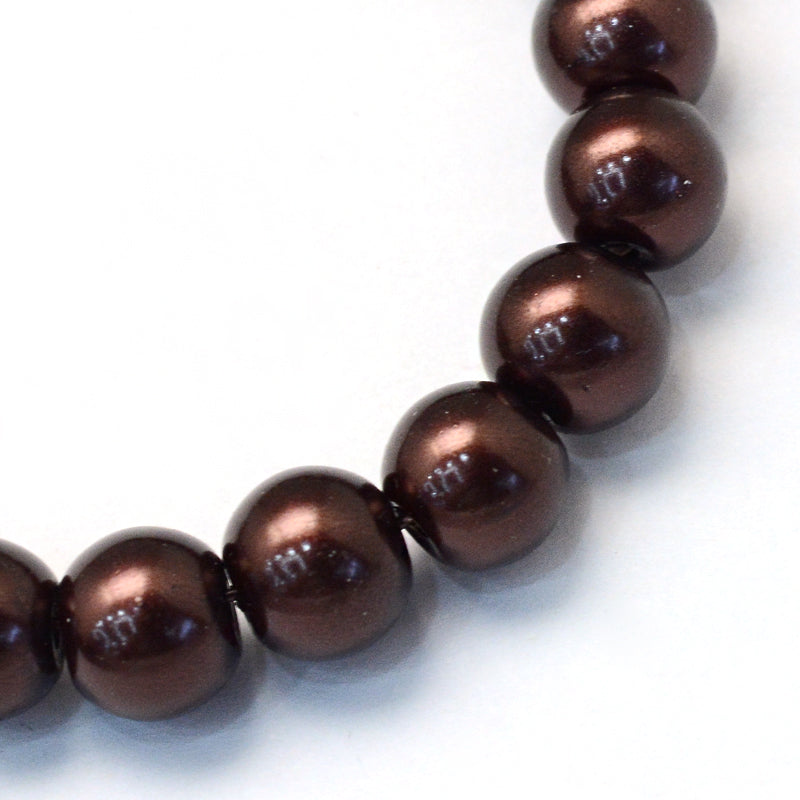 Glass Pearl 4mm Chocolate 81cm strand approx 216 pce. These glass pearls in beautiful  colours have been coated and are heated for a durable finish. Economical glass pearls offer a hint of elegance at just a fraction of the cost of designer pearls. Colour may vary slightly from dye lot to dye lot.