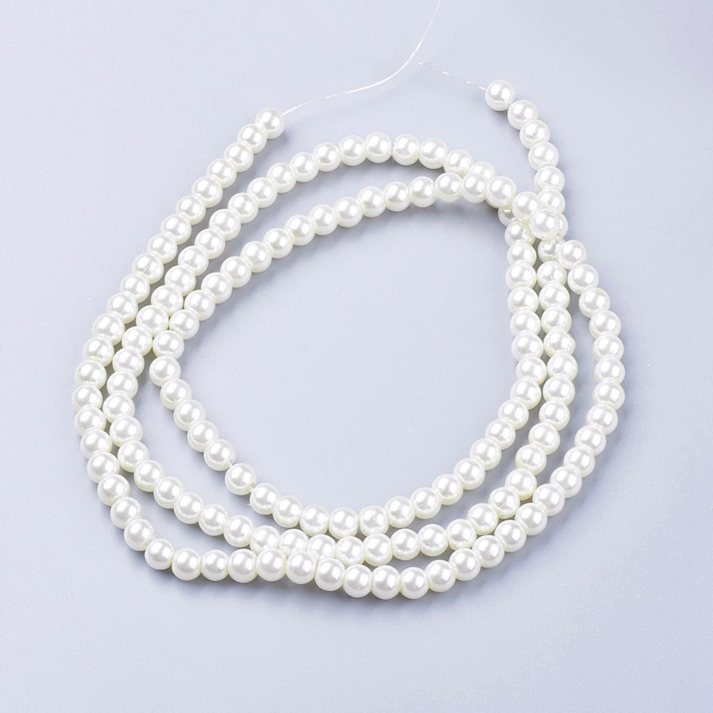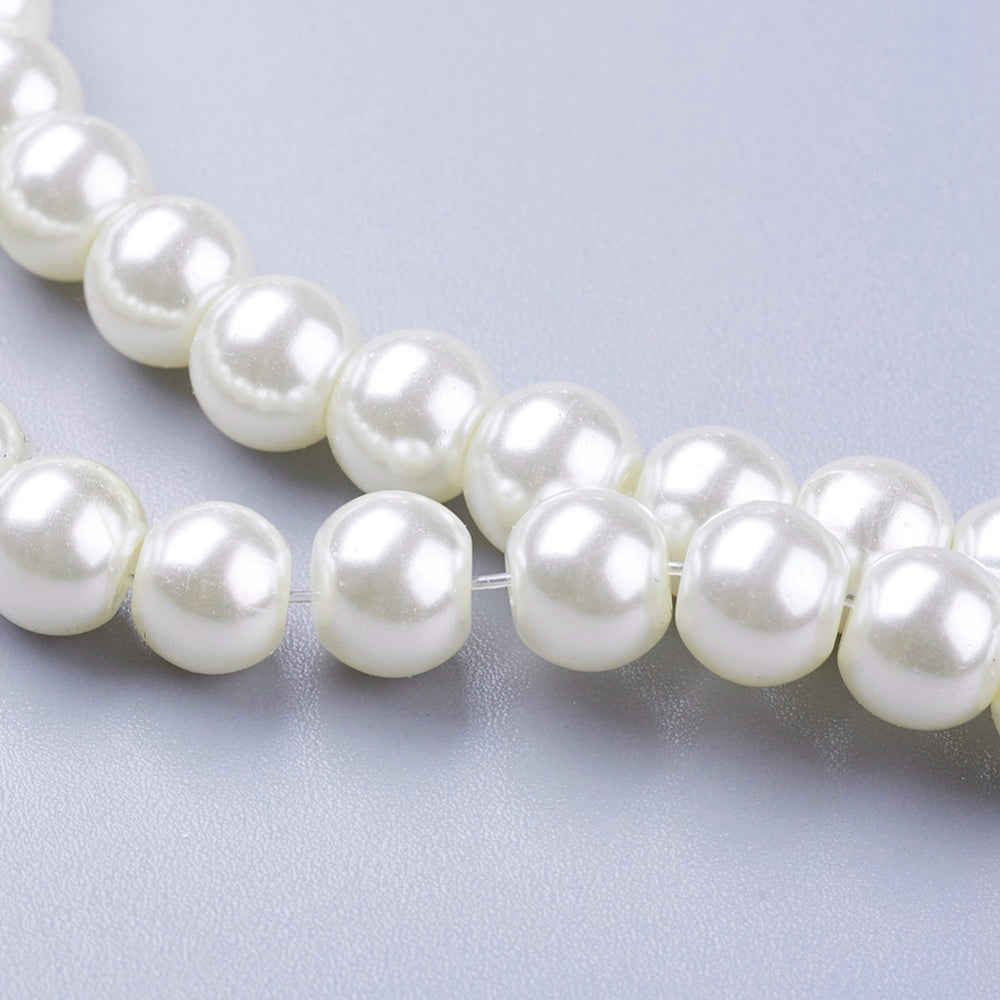 Glass Pearl 6mm Ivory 81cm strand approx 140 pce. These glass pearls in beautiful colours have been coated and are heated for a durable finish. Economical glass pearls offer a hint of elegance at just a fraction of the cost of designer pearls. Colour may vary slightly from dye lot to dye lot.