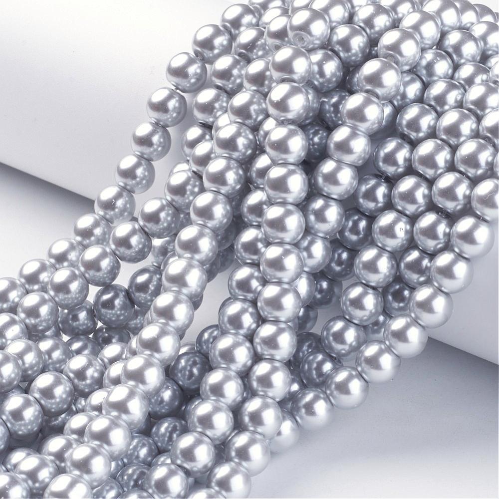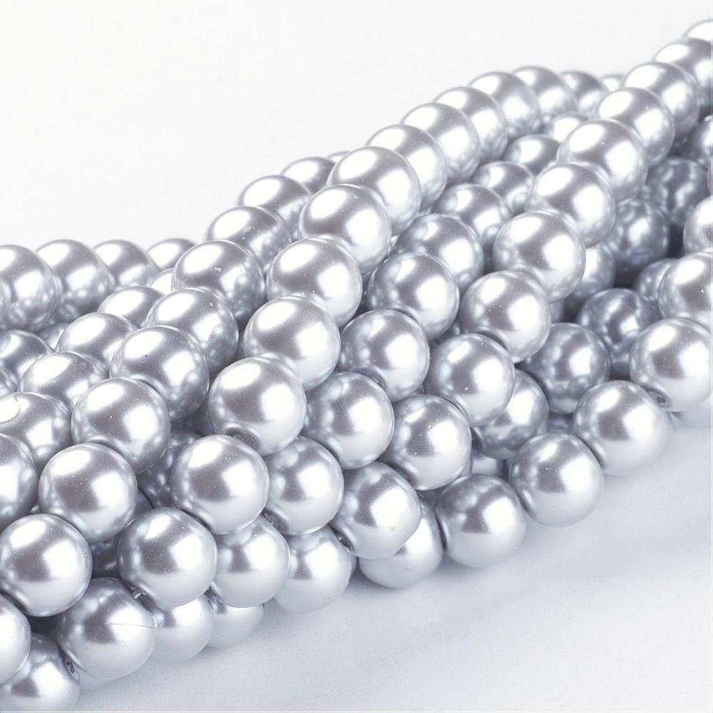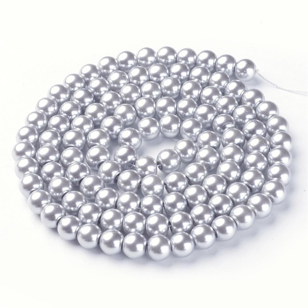 Glass Pearl 8mm Grey 81cm strand approx 110 pce. These glass pearls in beautiful colours have been coated and are heated for a durable finish. Economical glass pearls offer a hint of elegance at just a fraction of the cost of designer pearls. Colour may vary slightly from dye lot to dye lot.