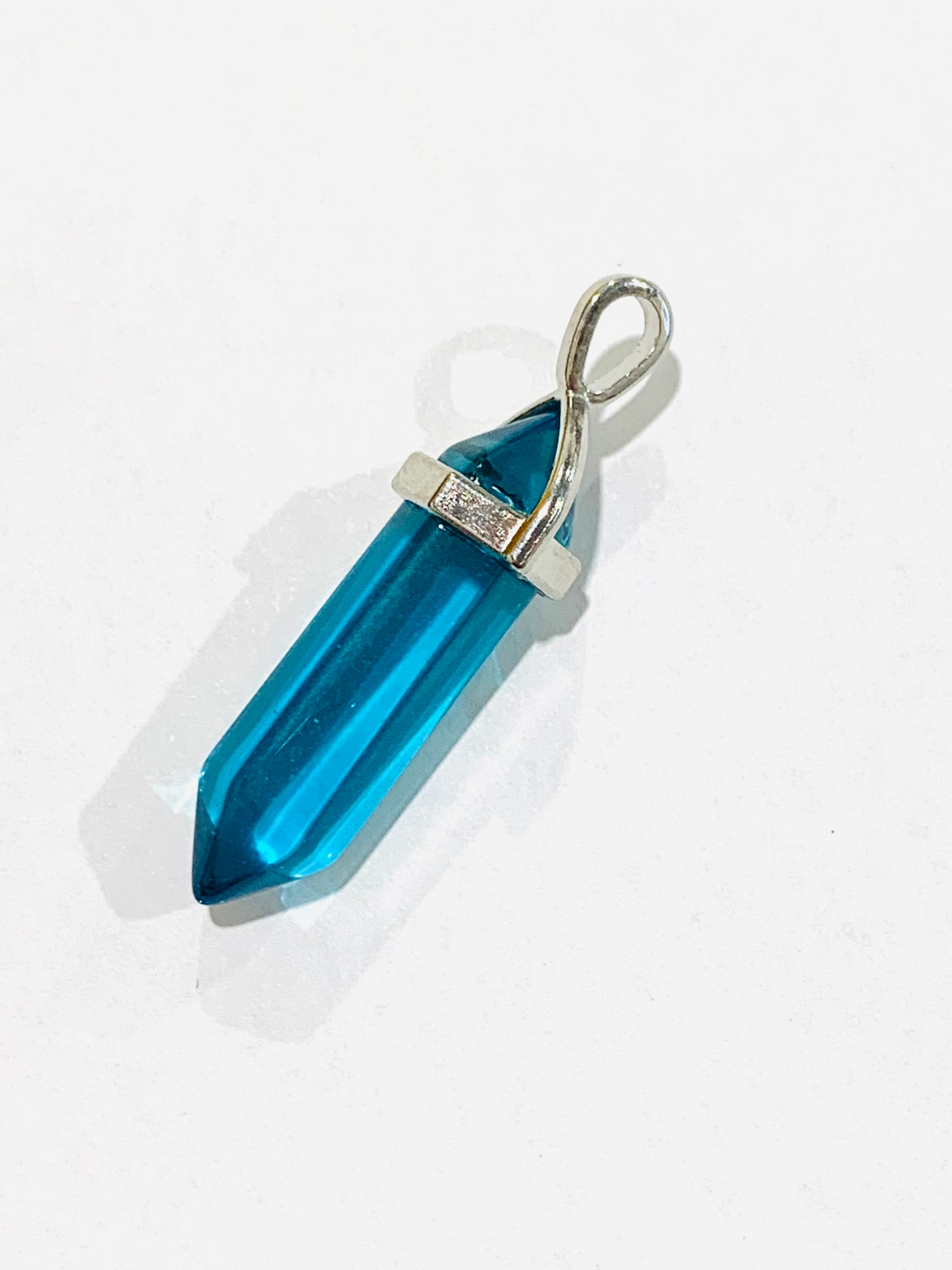 Pendant Teal Pointed Glass 39x9mm Silver Findings
