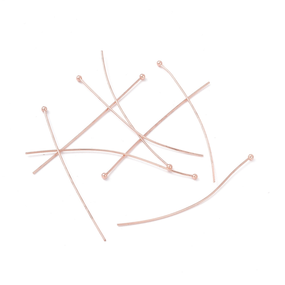 Ball Head Pin Brass 50mm CLF Rose Gold 1.8mm Ball 24gauge 10pcs