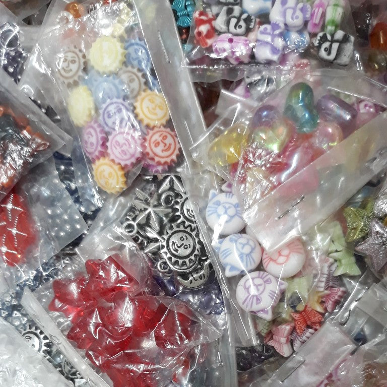 250g of Beady Fun! A suprise mix of colourful, quirky, vintage, and creative beads! Each bag includes a random mix of colourful plastic beads that make for a great starter pack for adults and kids. Great for bracelets, keyrings, or craft kits. Have fun creating and designing your own jewellery with this fun packed bag, the combinations are endless.