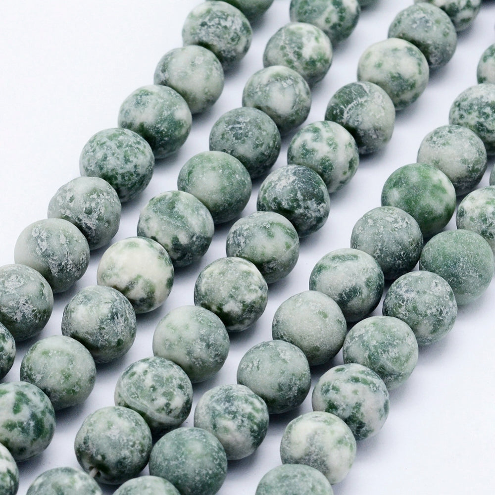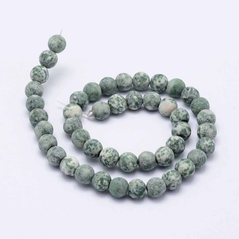 Green Spot Jasper Frosted 8mm Round Natural approx 45 beads per 37.5cm Strand
