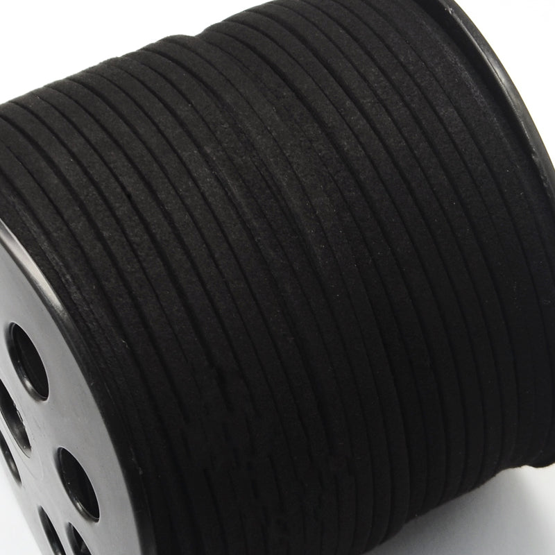 Faux Suede Cord Black 3x1.5mm Per Mtr