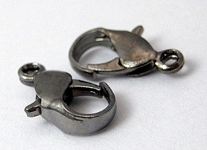 Clasp Lobster 12mm Nickle Free Black 5pcs. Made with black-plated "pewter" (zinc-based alloy)