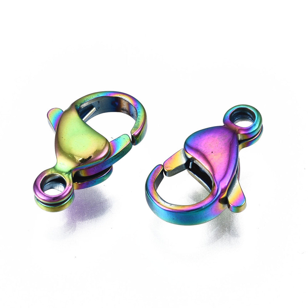 Clasp Lobster 13mm Stainless Steel Rainbow Ion Plate 3pcs