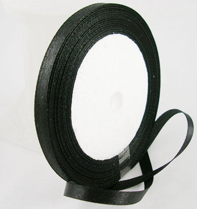 Ribbon Single Faced Satin 6mm Black Polyester 23mtr per roll