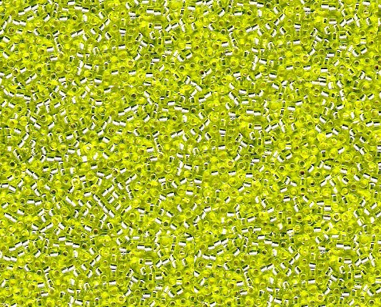 Miyuki Delica 11/0 Chartreuse Transparent Silver Lined (light passes through the bead, hole of bead is silver lined) 7gram Tube