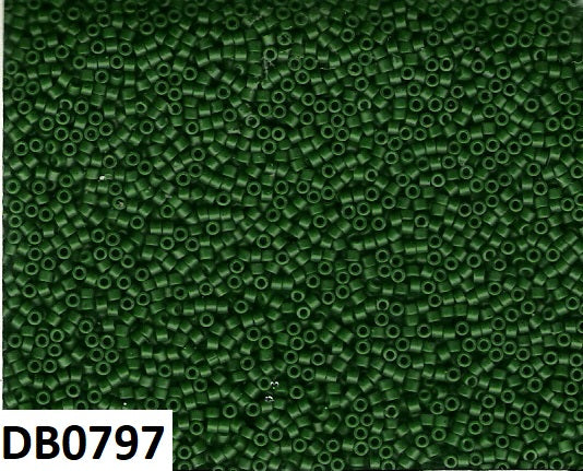 Miyuki Delica 11/0 Dark Olive Opaque Matte Dyed (no light passes through the bead, with a frosted appearance, bead is dyed) (D) 7gram Tube