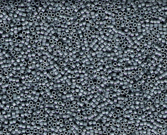 Miyuki Delica 11/0 Denim Blue Opaque Matte Luster Rainbow (no light passes through the bead, with a frosted appearance and pearl-like luster and an aurora borealis rainbow finish) 7gram Tube