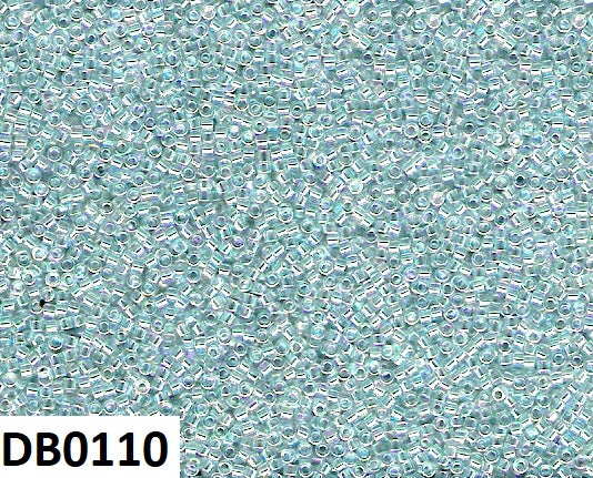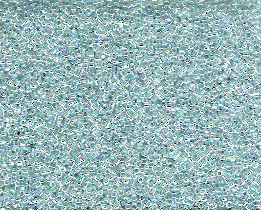 Miyuki Delica 11/0 Light Grey-Blue Transparent Luster Rainbow (light passes through the bead, with a pearl-like luster and an aurora borealis rainbow finish) 7gram Tube