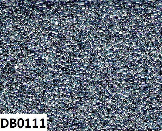 Miyuki Delica 11/0 Medium Grey-Blue Transparent Luster Rainbow (light passes through the bead, with a pearl-like luster and an aurora borealis rainbow finish) 7gram Tube