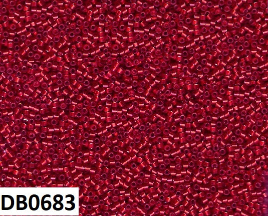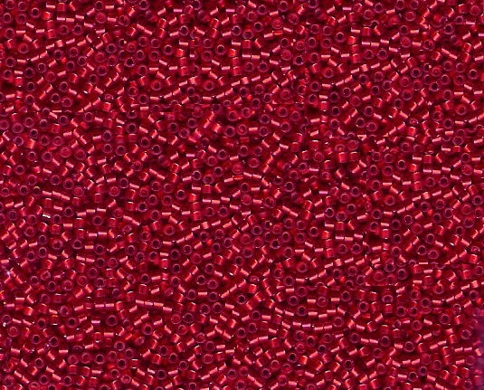 Miyuki Delica 11/0 Ruby Red Transparent Silver Lined Semi-Matte Dyed (light passes through the bead, hole of bead is silver lined, not as shiny as most beads finish, but not quite a matte finish either, bead is dyed) (D) 7gram Tube