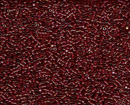 Miyuki Delica 11/0 Red/Cherry Inside Color Lined Rainbow (bead is transparent, colors are listed as: inside color/outside color, with an aurora borealis rainbow finish) 7gram Tube