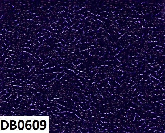 Miyuki Delica 11/0 Royal Purple Transparent Silver Lined Dyed (light passes through the bead, hole of bead is silver lined, bead is dyed) (D) 7gram Tube