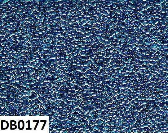 Miyuki Delica 11/0 Turquoise Blue Transparent Rainbow (light passes through the bead, with an aurora borealis rainbow finish) 7gram Tube