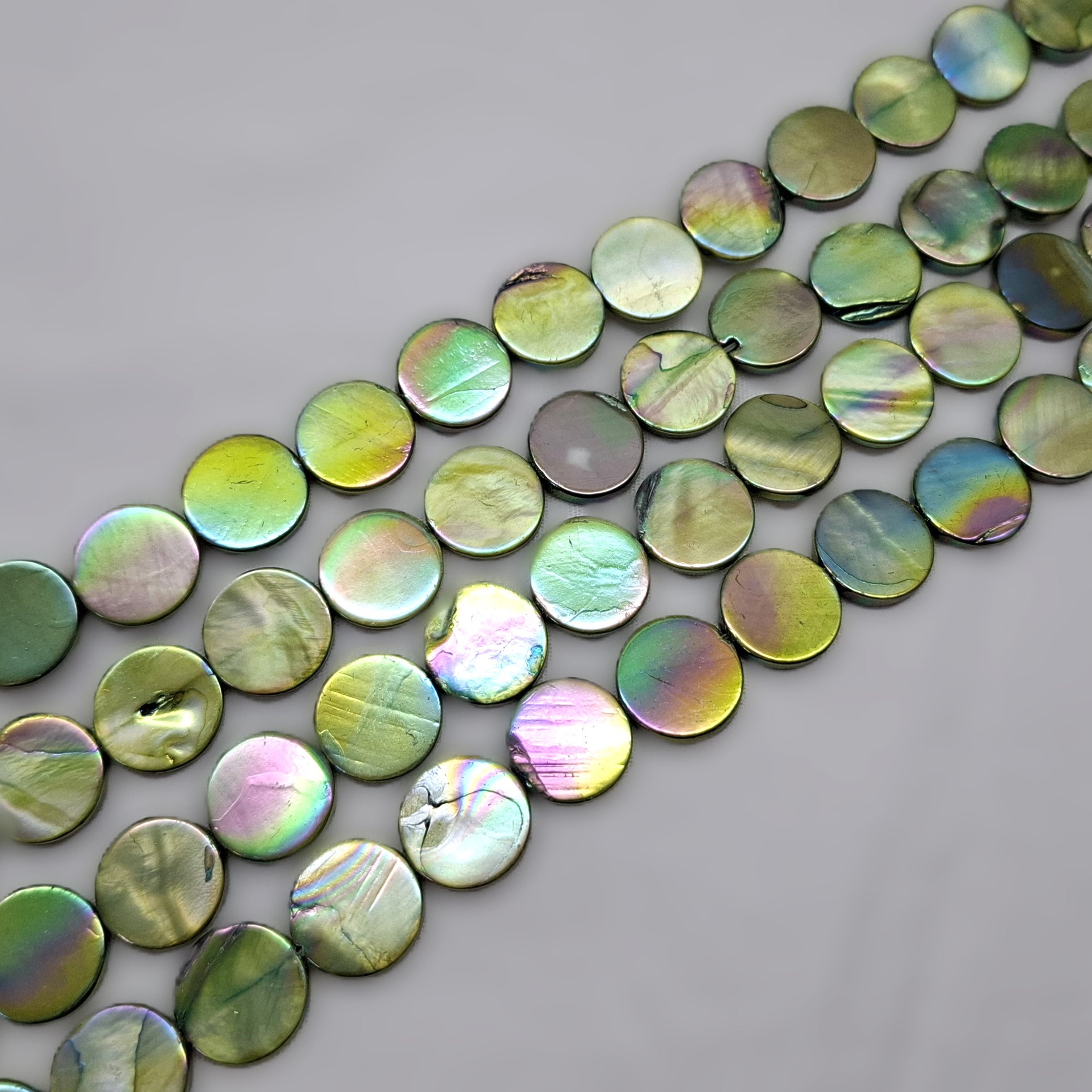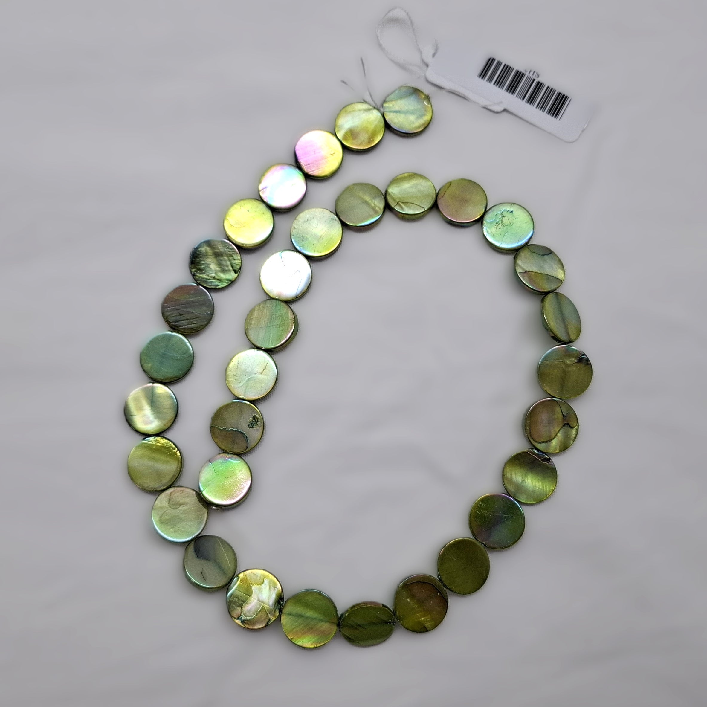 Freshwater Shell Coin 10mm Lime AB Natural Dyed approx 34 beads per 39cm strand