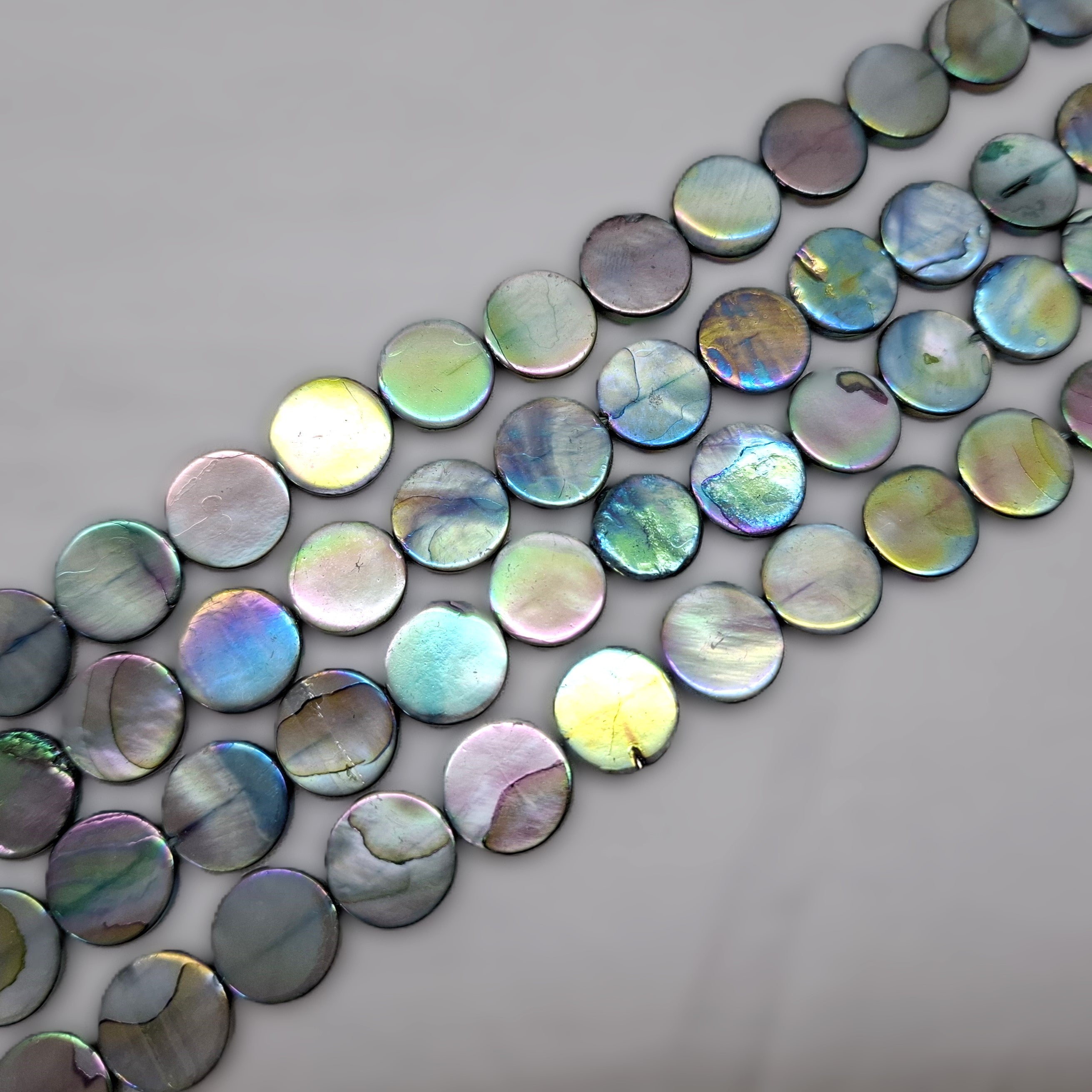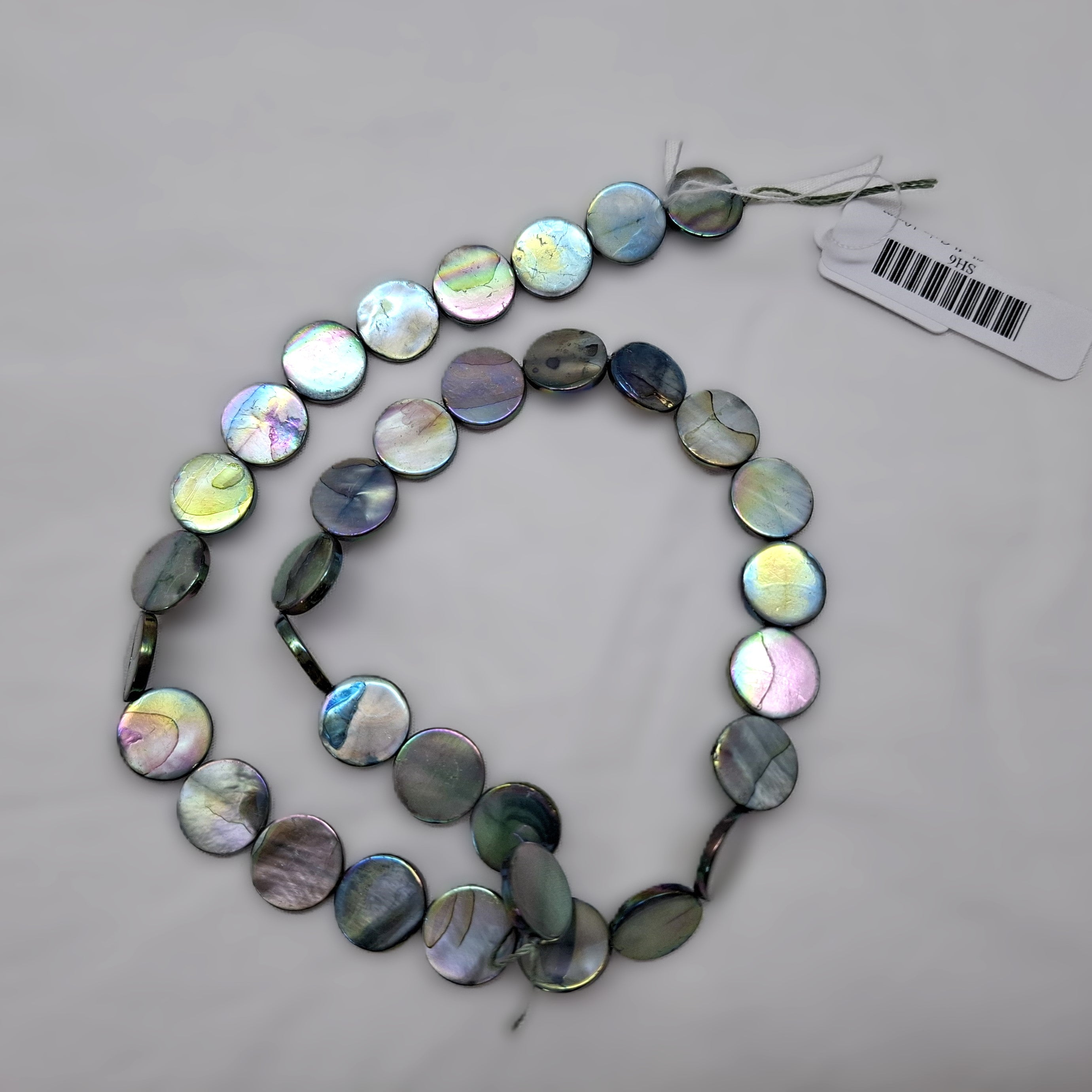 Freshwater Shell Coin 10mm Midnight Blue AB Natural Dyed approx 34 beads per 39cm strand