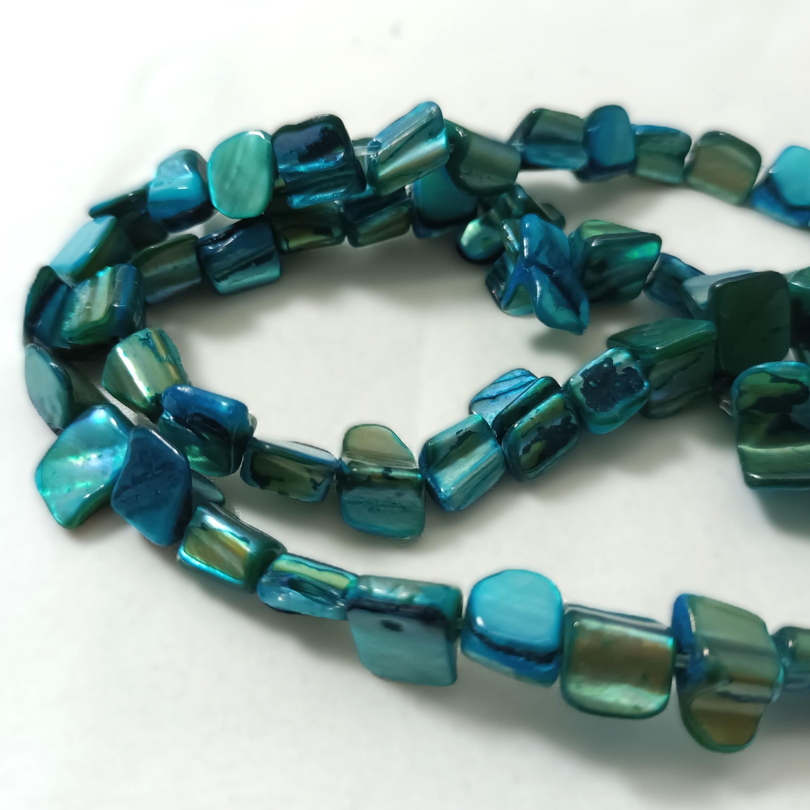 Mother Of Pearl Cube 8mm Blue approx 51 beads per 39cm strand