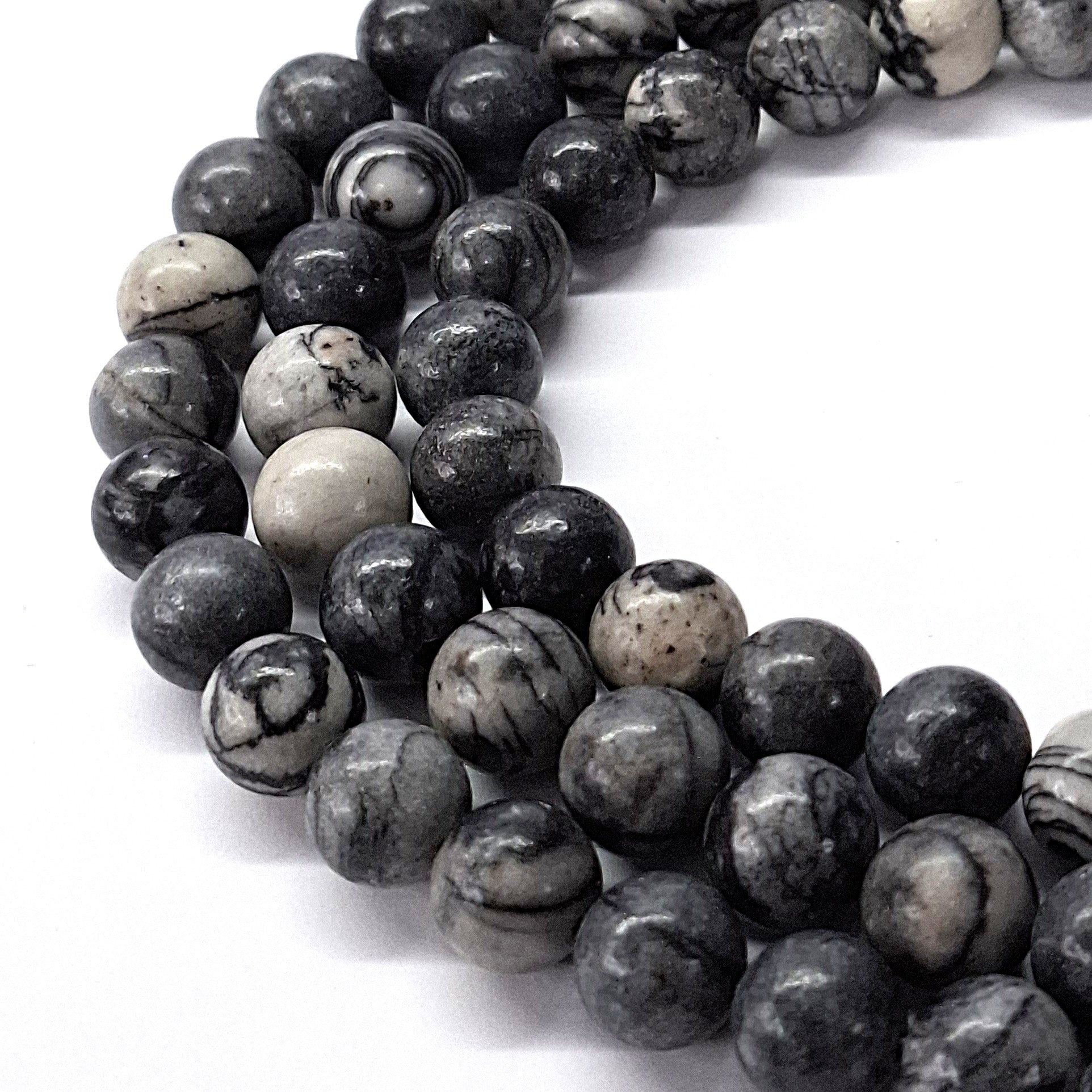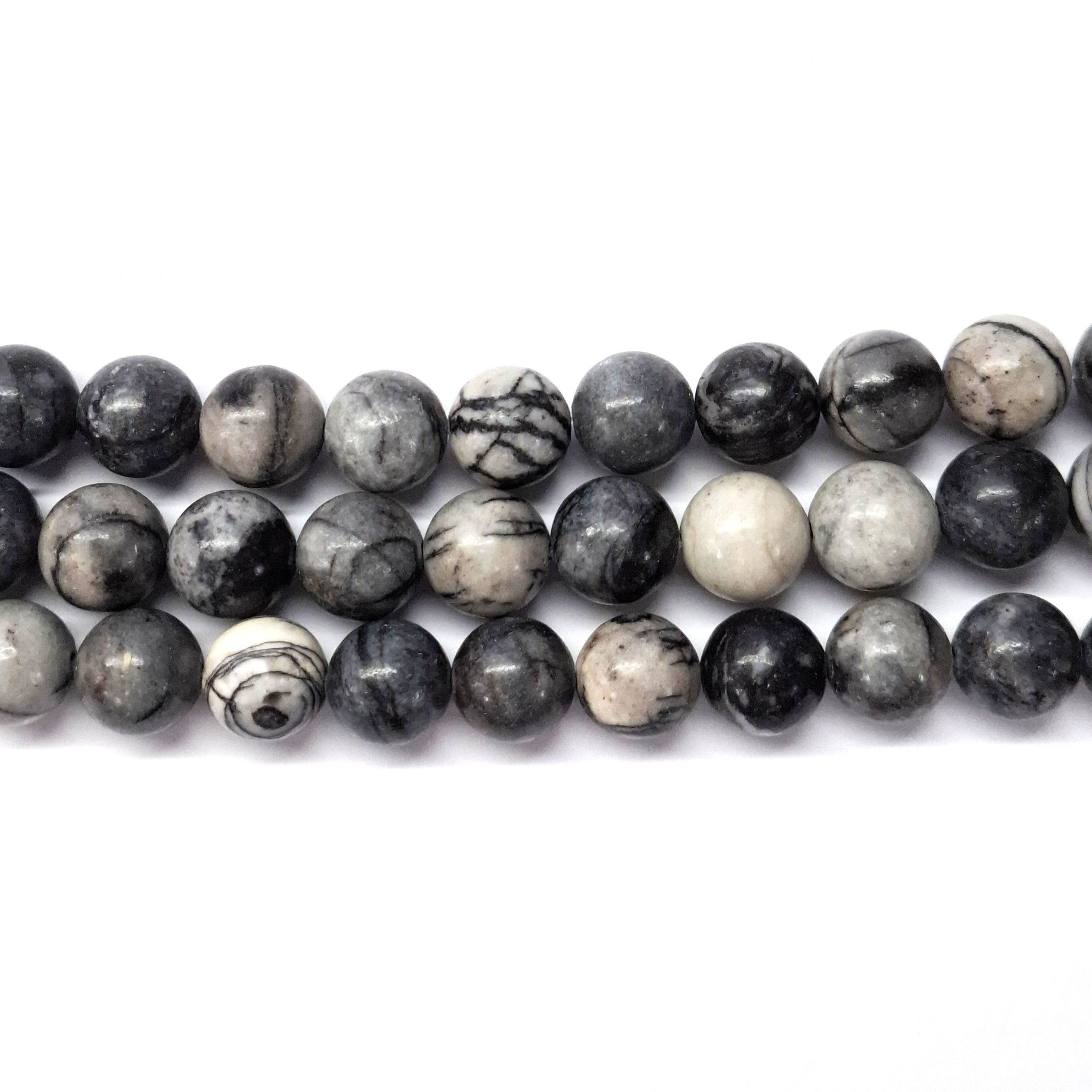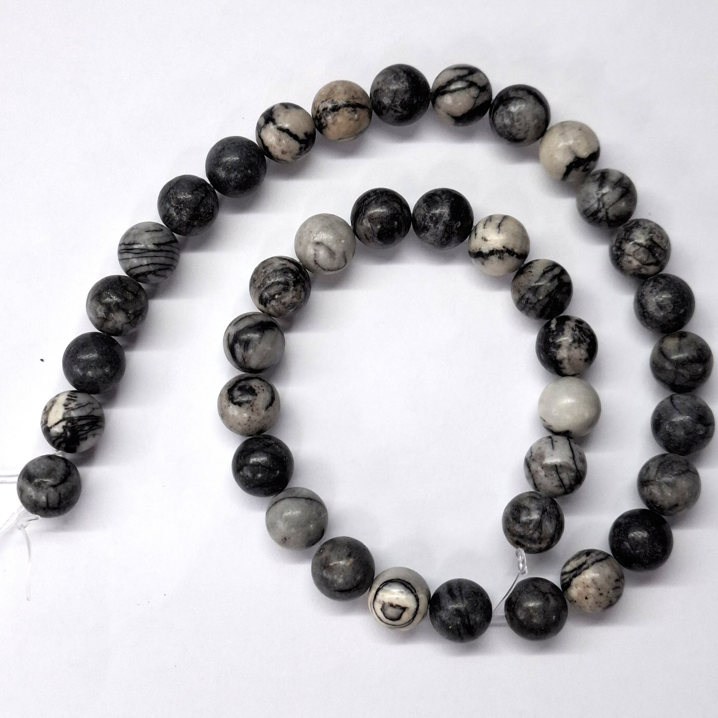 Black Silkstone 10mm Round Natural approx 39 beads per 38cm strand