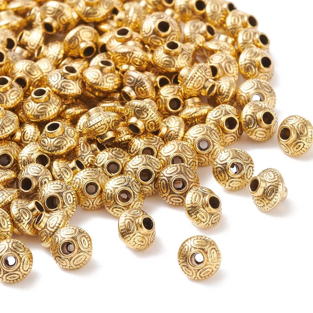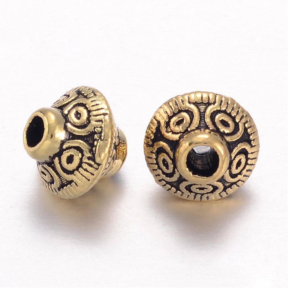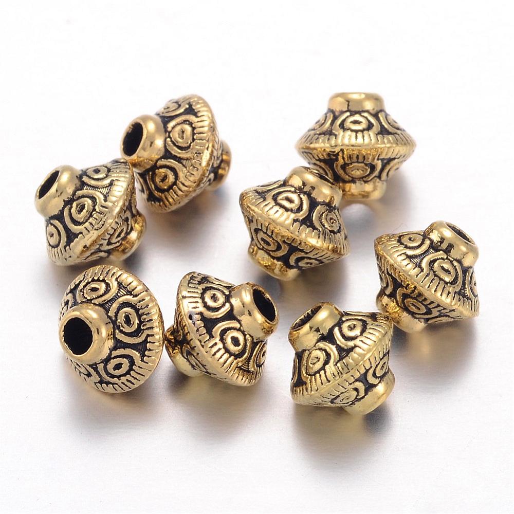 Spacer Bicone 6.5x7.5mm Lead, Nickel & Cadmium Free Gold. 20 pieces per packet. Spacer beads are used to highlight your design. Insert them at intervals while stringing your beads to create a stunning effect.