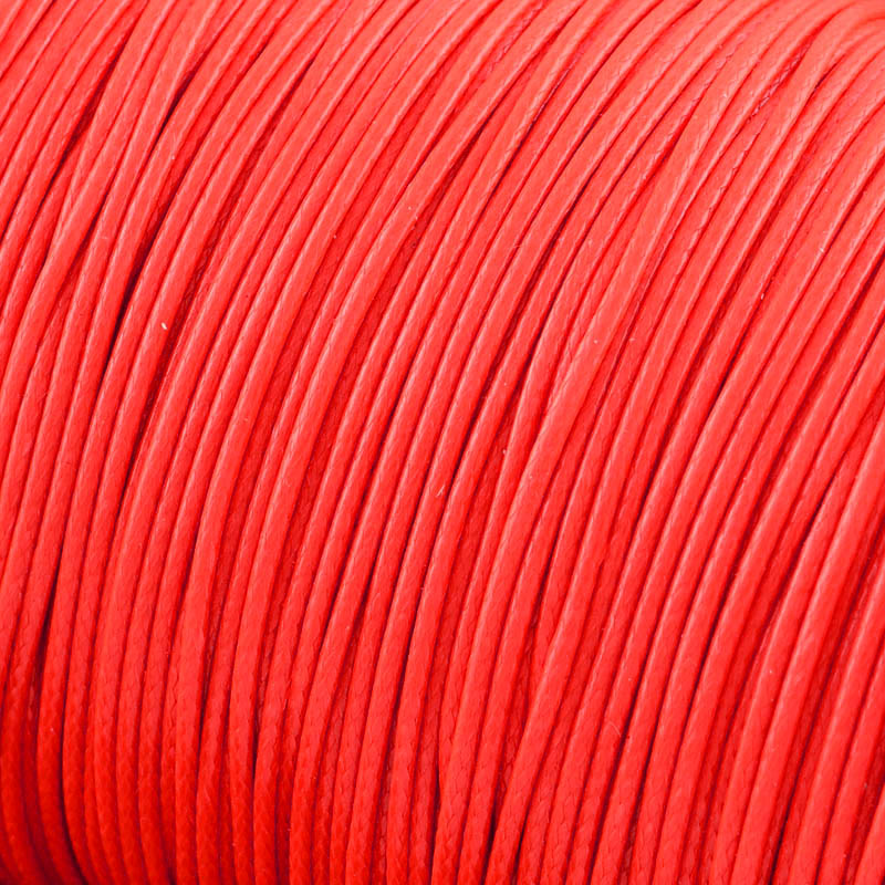 Cord Waxed Polyester Fluro Red 1mm Priced Per Meter. This woven round cord contains a light wax treatment for a soft, flexible drape. It is made of polyester and knots securely. This cord is perfect for macrame and shamballa designs. Cord sizes and colours are approximate and may vary slightly.