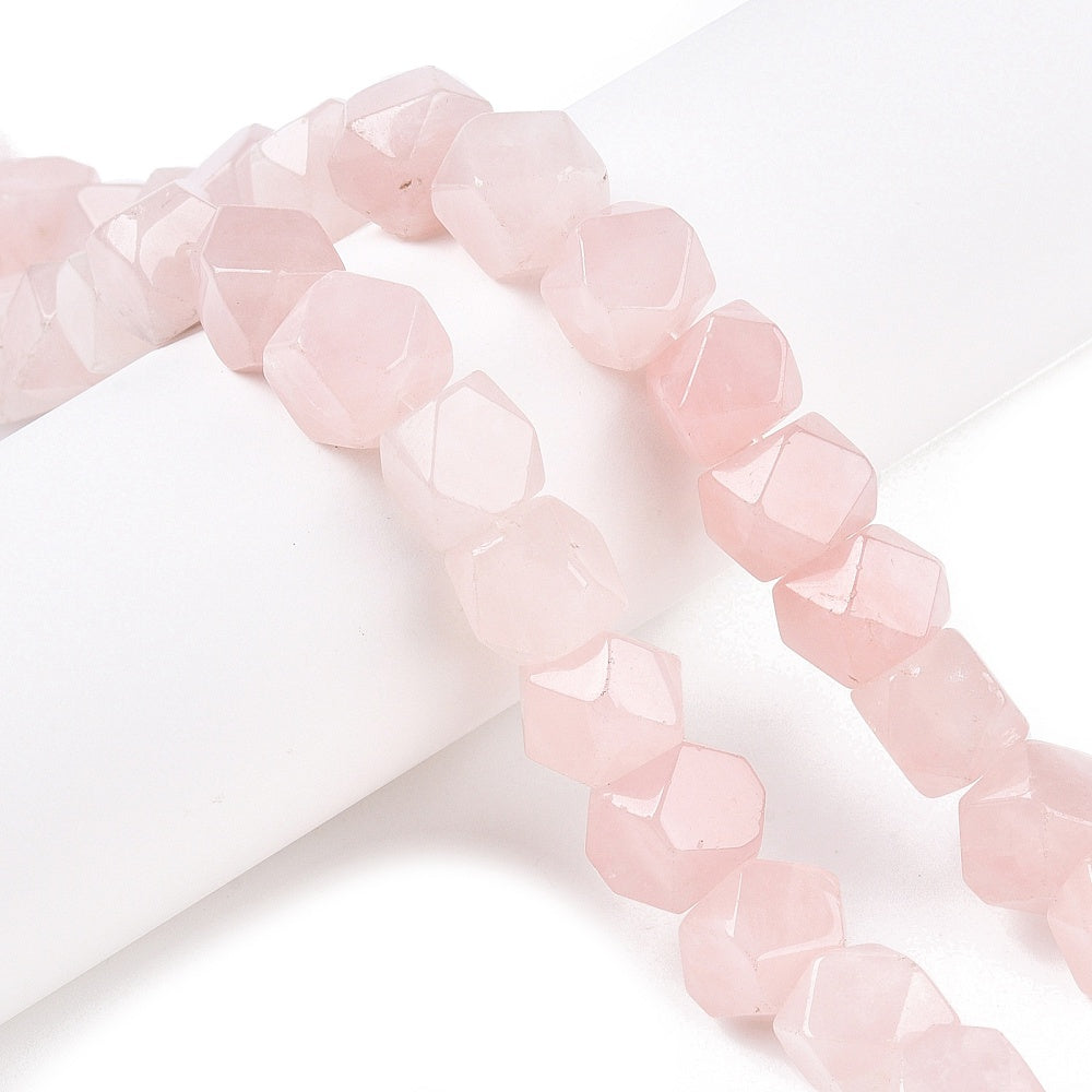 Discover the gentle charm of Rose Quartz in these stunning 10x10.5mm faceted cubes. Each 20cm strand features 20 beautifully cut natural beads, perfect for creating jewellery that radiates warmth and elegance. The faceted surfaces catch light beautifully, adding sparkle to bracelets, necklaces, and mixed-media designs. Rose Quartz's soothing energy makes these beads ideal for both seasoned jewellers and creative beginners looking to craft something special.
