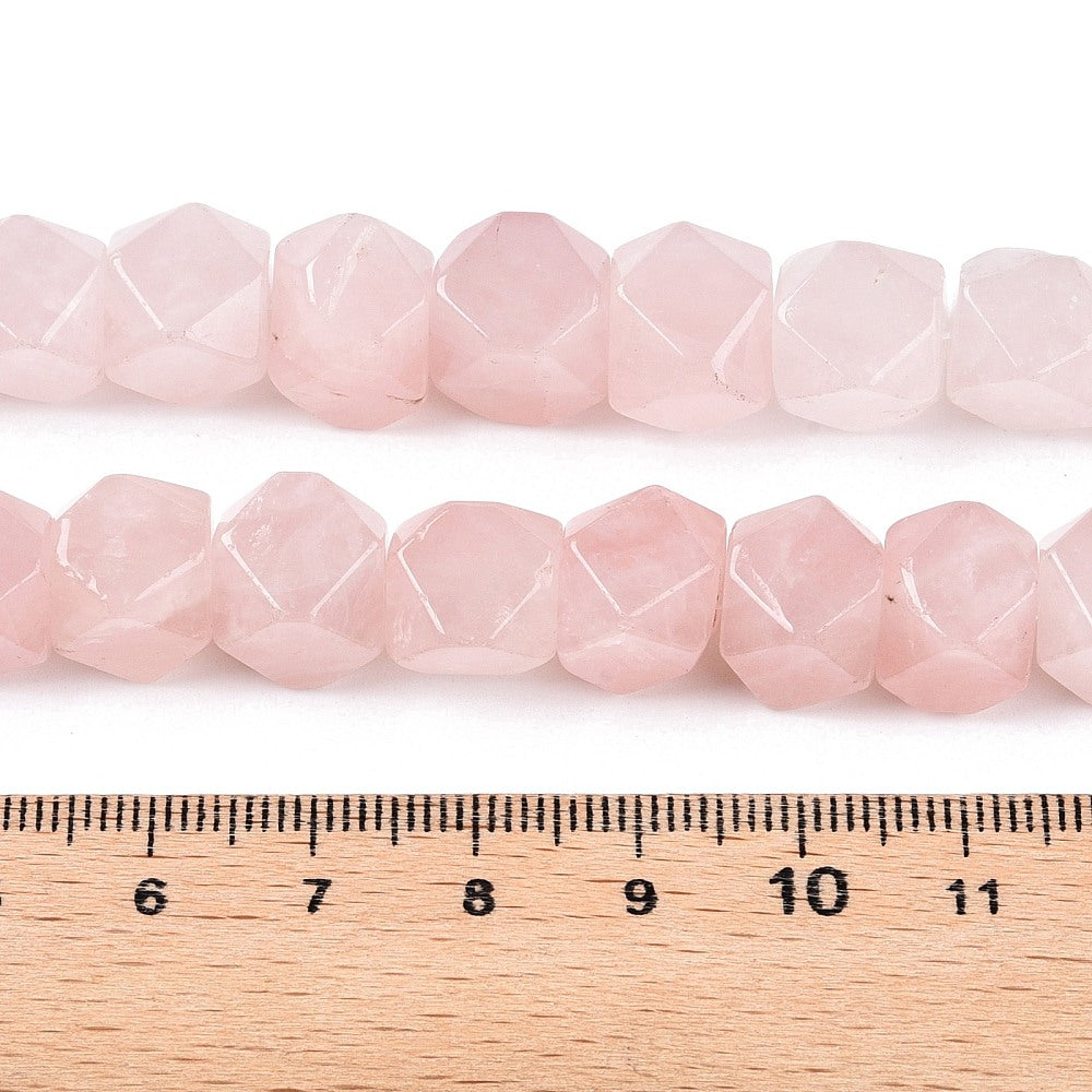 Rose Quartz 10x10.5mm Natural Faceted Cube 20 beads per 20cm Strand