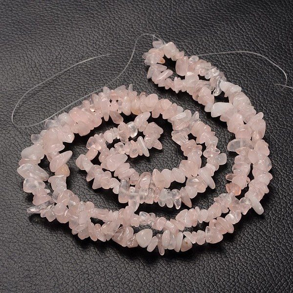 Discover the gentle energy of rose quartz with this beautiful 80cm strand of natural chips. Each bead ranges from 5-8mm, offering organic variation and authentic charm perfect for creating unique jewellery pieces or adding to your craft collection. These unpolished natural stones bring warmth and character to any design, whether you're stringing a delicate bracelet, crafting a statement necklace, or exploring your creative side. A versatile staple for jewellery makers and crystal enthusiasts alike.