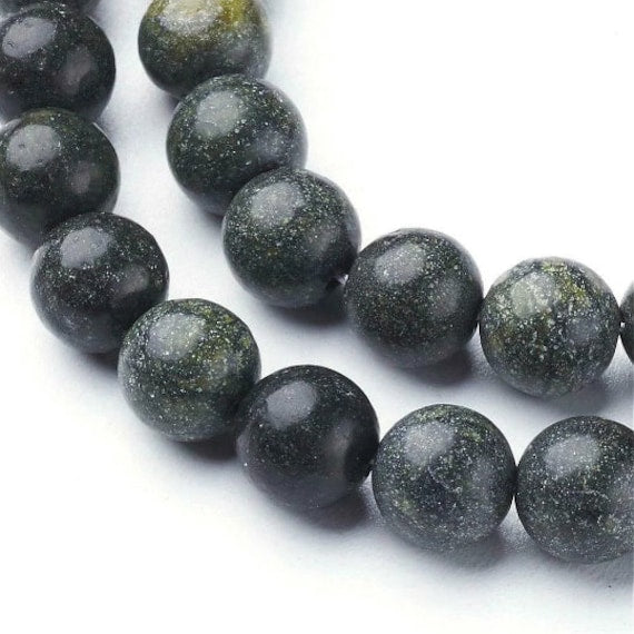 Serpentine Dark Green 6mm Round Natural approx 58 beads per 38cm strand