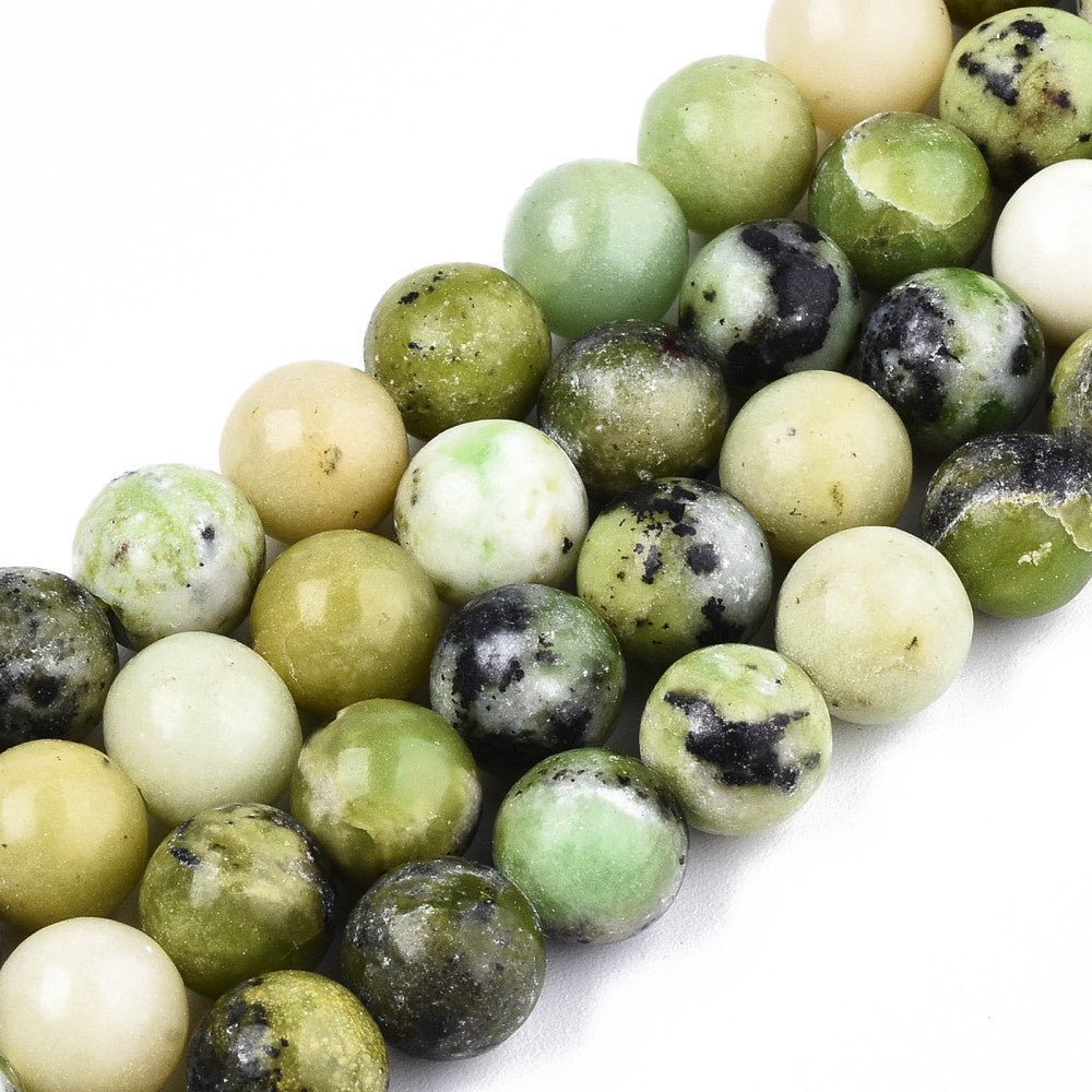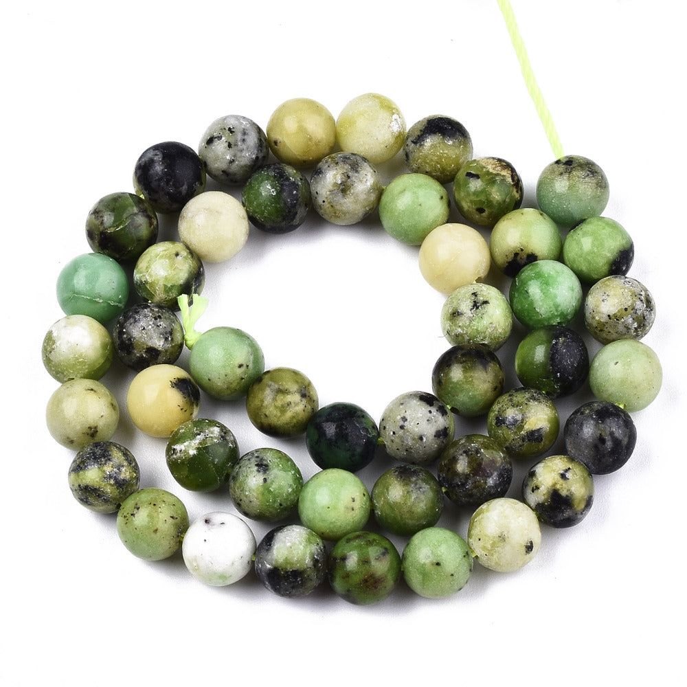 Serpentine Yellow/Green 8mm Round Natural 37.5cm Strand Approx 49 beads