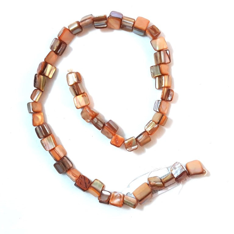 Mother Of Pearl Cube 8mm Orange approx 51 beads per 39cm strand