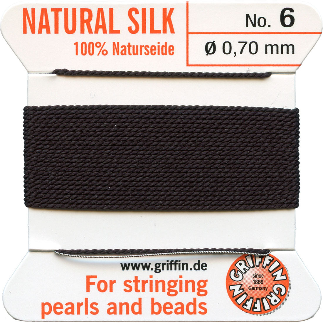 Griffin Silk No 6 0.7mm Black 2mtrs W/Needle